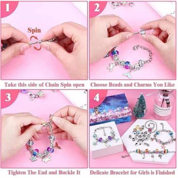 Izveidojiet pielāgotas aproces, kas atbilst jūsu vēlmēm un stilam. Komplektā ir līdz pat 60 dažādu krāsu pērlītēm un piekariņiem, kas ļauj brīvi rotāt aproces pēc saviem ieskatiem!