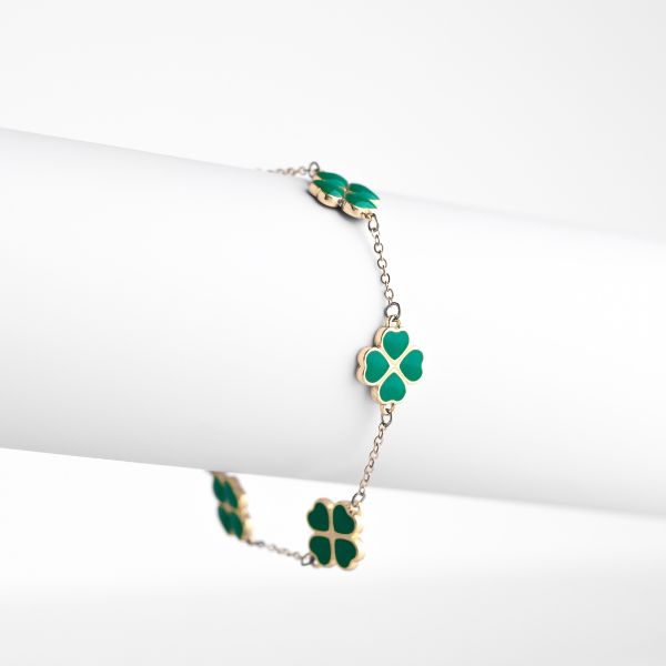🍀 Četri Shamrock Lucky rokassprādze & # 8211; eleganta rokassprādze ar šampanieša simboliem, kas simbolizē veiksmi un pozitīvu enerģiju.