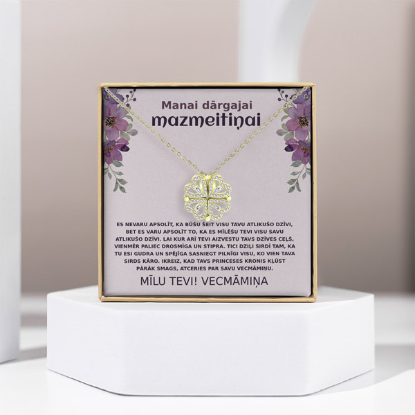 🎁 Maģiskā kaklarota no četrlapu āboliņa pārtop sirsniņu sērijā, ļaujot unikāli izpausties jūsu saiknei. Kaklarota nav tikai modes aksesuārs; tas atspoguļo emocijas un saites, ko nēsājat savā sirdī.