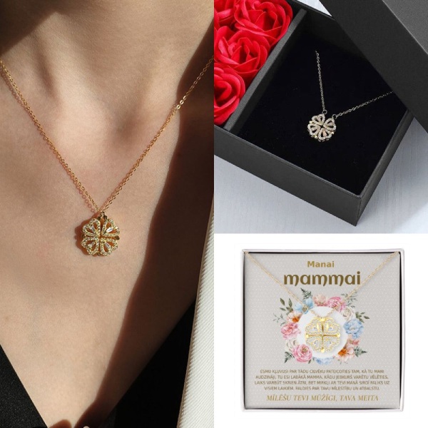 - Magnētisks dizains, kas ļauj kaklarotu salocīt četru lapu āboliņa dizainā.