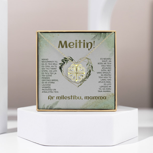 🎁 Maģiskā kaklarota no četrlapu āboliņa pārtop sirsniņu sērijā, ļaujot unikāli izpausties jūsu saiknei. Kaklarota nav tikai modes aksesuārs; tas atspoguļo emocijas un saites, ko nēsājat savā sirdī.