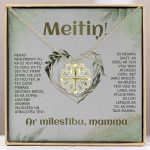 NEKAD NEAIZMIRSTI, KA ES TEVI MĪLU VISLABĀK PASAULĒ. CERU, KA ARĪ TU TICI SEV, TĀ KĀ ES TIKU JUMS. KAD DZĪVE IZMĒST BALKI ZEM TAVS KĀJĀM, ŠĪ VECĀ LAUVA VIENMĒR NESTĒS JUMS BALĀ. ES NEVARU TEV SOLĪT, KA ES BŪŠU AR TEVI TAVU DZĪVES BEIGĀM, BET ES VARU APOLĒT, KA MĪLĒŠU TEVI MŪŽA BEIGĀS. ES LEPOJU AR TAVU MAMMU.