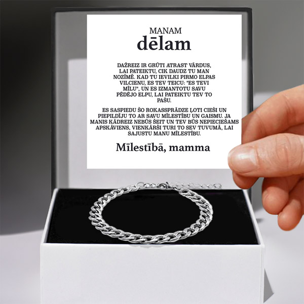 Nepārspīlēts šarms: Izsmalcinātību piešķir smalkais kuloniņš, kas rotāts ar kubiskā cirkonija kristāliem, nodrošinot perfektu līdzsvaru starp vīrišķīgu eleganci un eleganci. Kristāli izstaro gaismu, nodrošinot neuzkrītošu, bet iespaidīgu mirdzumu jūsu plaukstas locītavai.