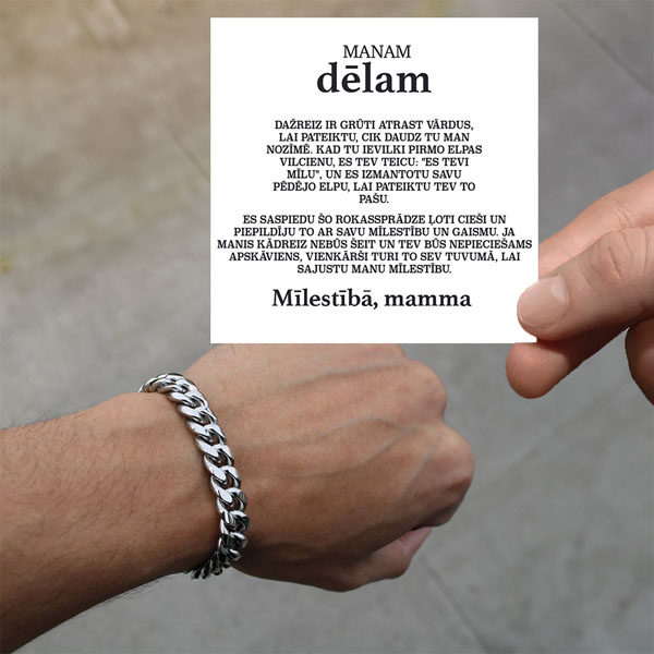 ES SASPIEDU ŠO ĶĒDĪTI ĻOTI CIEŠI UN PIEPILDĪJU TO AR SAVU MĪLESTĪBU UN GAISMU. JA MANIS KĀDREIZ NEBŪS ŠEIT UN TEV BŪS NEPIECIEŠAMS APSKĀVIENS, VIENKĀRŠI TURI TO SEV TUVUMĀ, LAI SAJUSTU MANU MĪLESTĪBU.