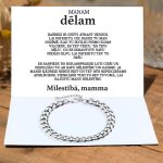 Nepārspīlēts šarms: Izsmalcinātību piešķir smalkais kuloniņš, kas rotāts ar kubiskā cirkonija kristāliem, nodrošinot perfektu līdzsvaru starp vīrišķīgu eleganci un eleganci. Kristāli izstaro gaismu, nodrošinot neuzkrītošu, bet iespaidīgu mirdzumu jūsu plaukstas locītavai.