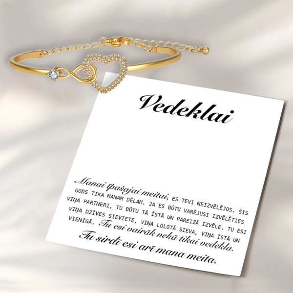 Rokassprādze apvieno bezgalības simbolu ar sirds motīvu, pārstāvot mūžīgu mīlestību un nedalāmu saikni.