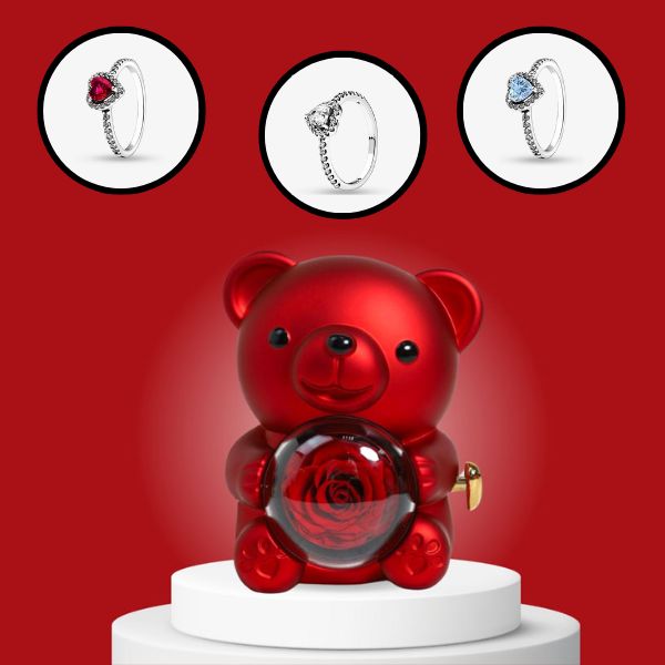 🌹💍 Mūžīgās mīlestības dāvanu komplekts: ROSBEAR Jewelry Box & HEARTISO Promise Ring 💍🌹