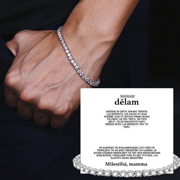 Iepazīstinām ar NEXUSLET– izsmalcinātības un stila iemiesojumu vīriešu rotaslietās. Uzlabojiet savu aksesuāru kvalitāti ar šo izsmalcināto tenisa ķēdītes aproci, kas ir rūpīgi izstrādāta, lai izstarotu greznību un eleganci.